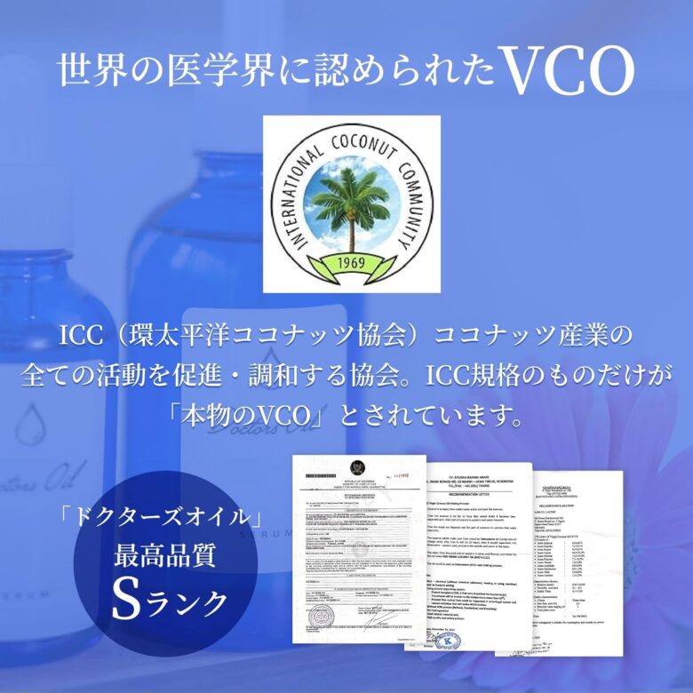 『ドクターズオイル』は、VCO(Virgin Coconut Oil)です。