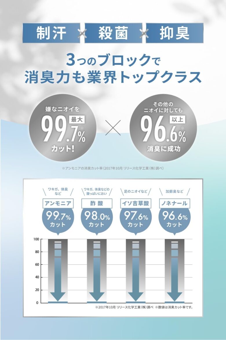 口コミや評判を見ていると、消臭力が高く、匂わなくなるため、汗が気にならなくなる、とのことです。