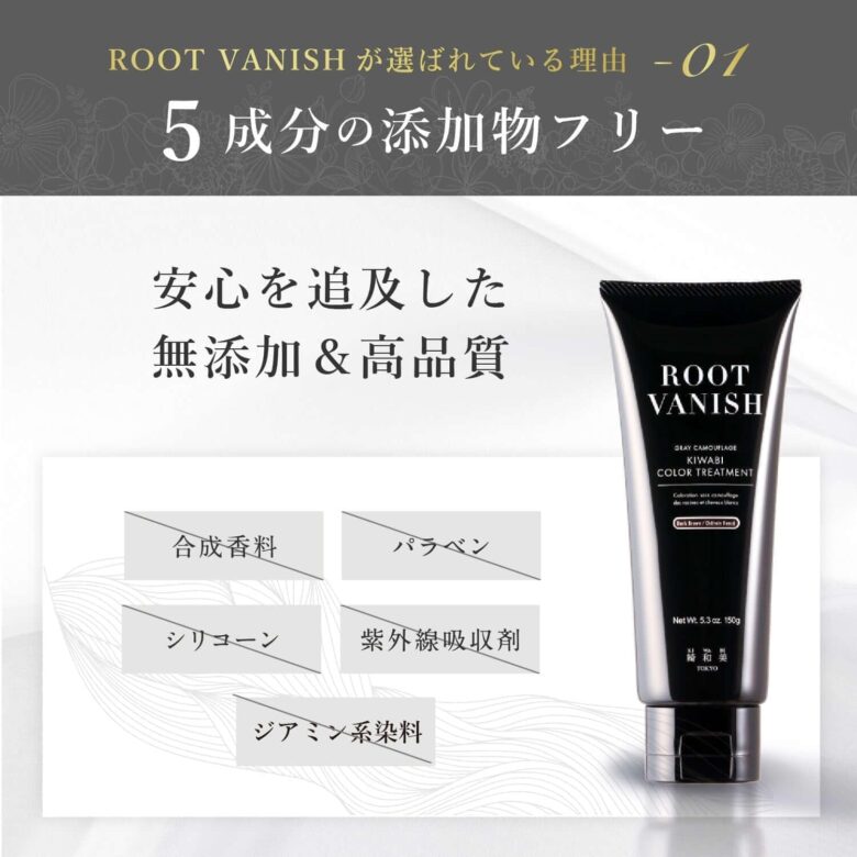 次に、ROOT VANISH白髪染めカラートリートメントの特徴・口コミや評判についてご紹介します。