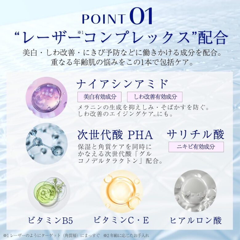 これ1本でシミ予防、シワ改善、ニキビまで防ぎ、透明感あふれる“グラススキン” 肌へ導きます。